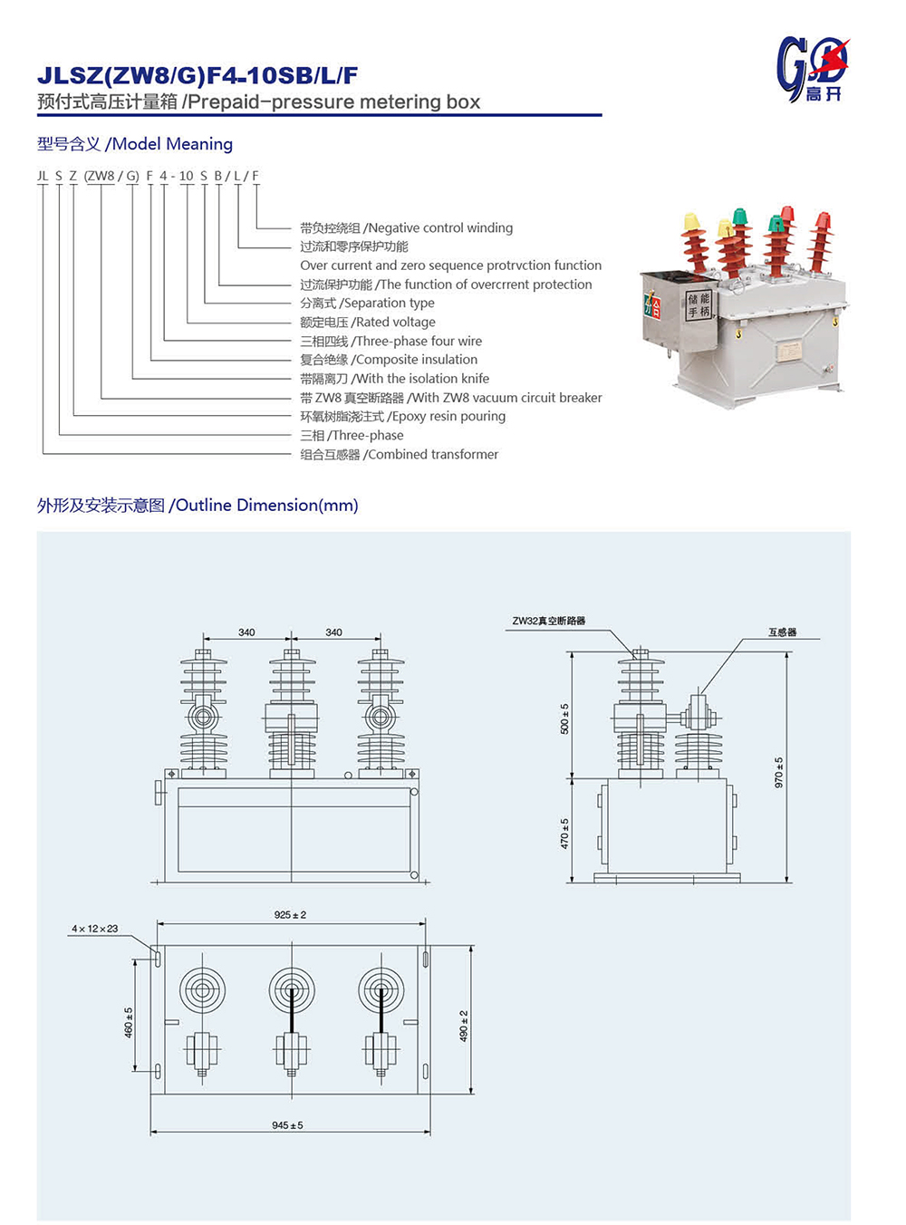 JLSZ(ZW8/G)F4-10SB/L/F預(yù)付式高壓計(jì)量箱